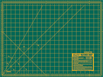 45mm is a good standard-sized cutter to start with, suitable for most beginner projects. I chose the Olfa Deluxe Rotary Cutter after trying it in my sewing class. I like the way it is angled, most rotary cutters are like a stick with the blade on the end. This one is slightly offset, it has a trigger in the handle you must squeeze to have the blade extend, and a safety button that keeps the blade from extending when locked. Going with a smaller diameter blade will allow for more intricate cutting.