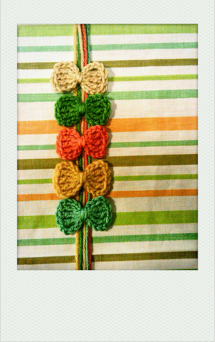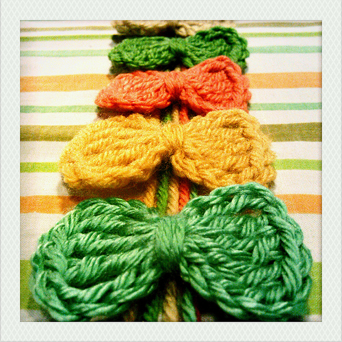 Look at these cute little crochet bows by Adaiha. They remind me of Hello Kitty bows! The pattern is easy and comes with really nice detailed photos too.